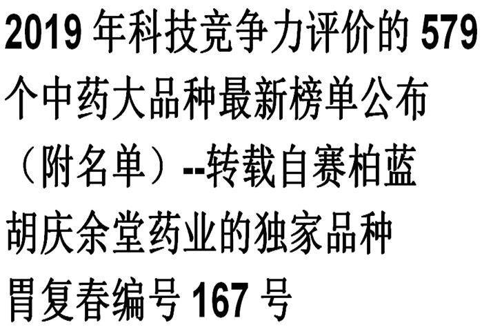 2019年科技竞争力评价的579个中药大品种最新榜单公布(附名单)--转载自赛柏蓝(星空·综合体育药业的独家品种胃复…